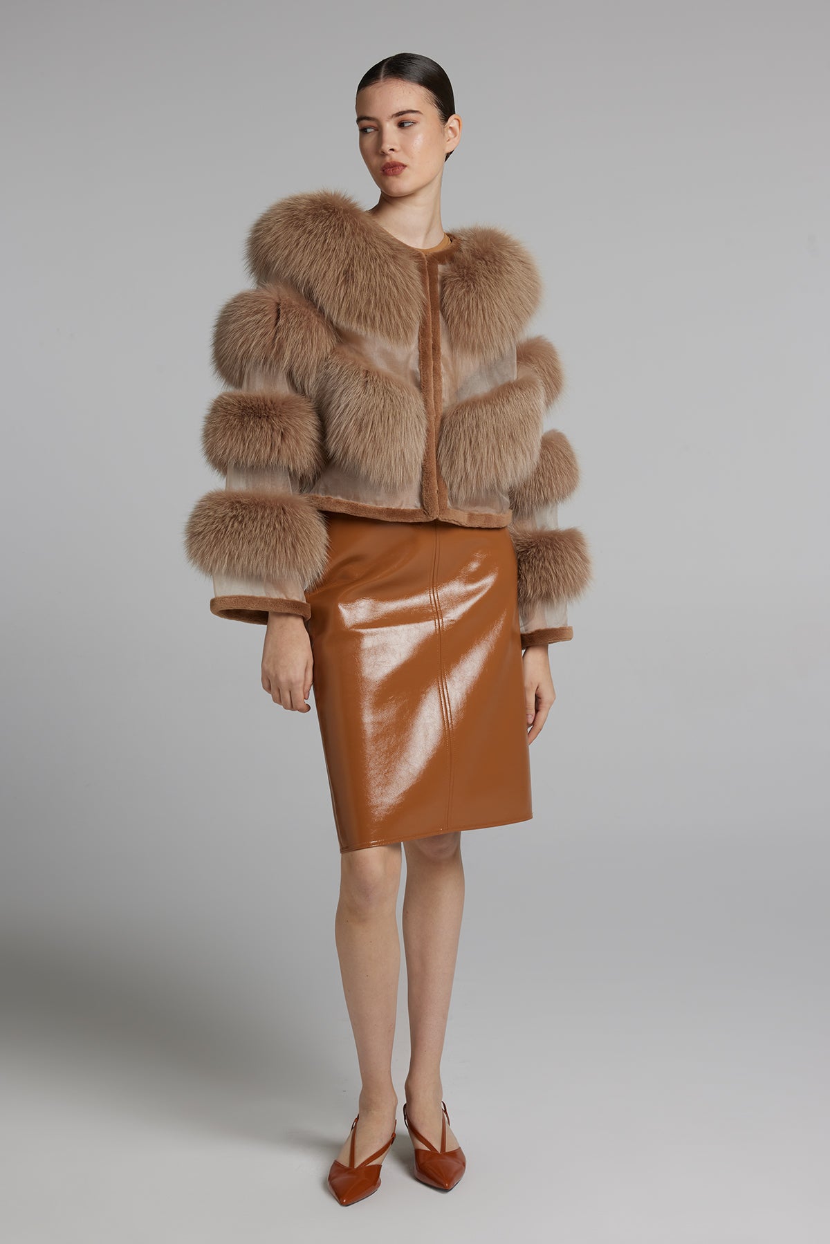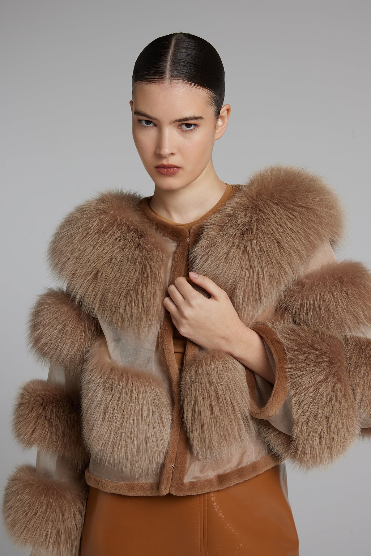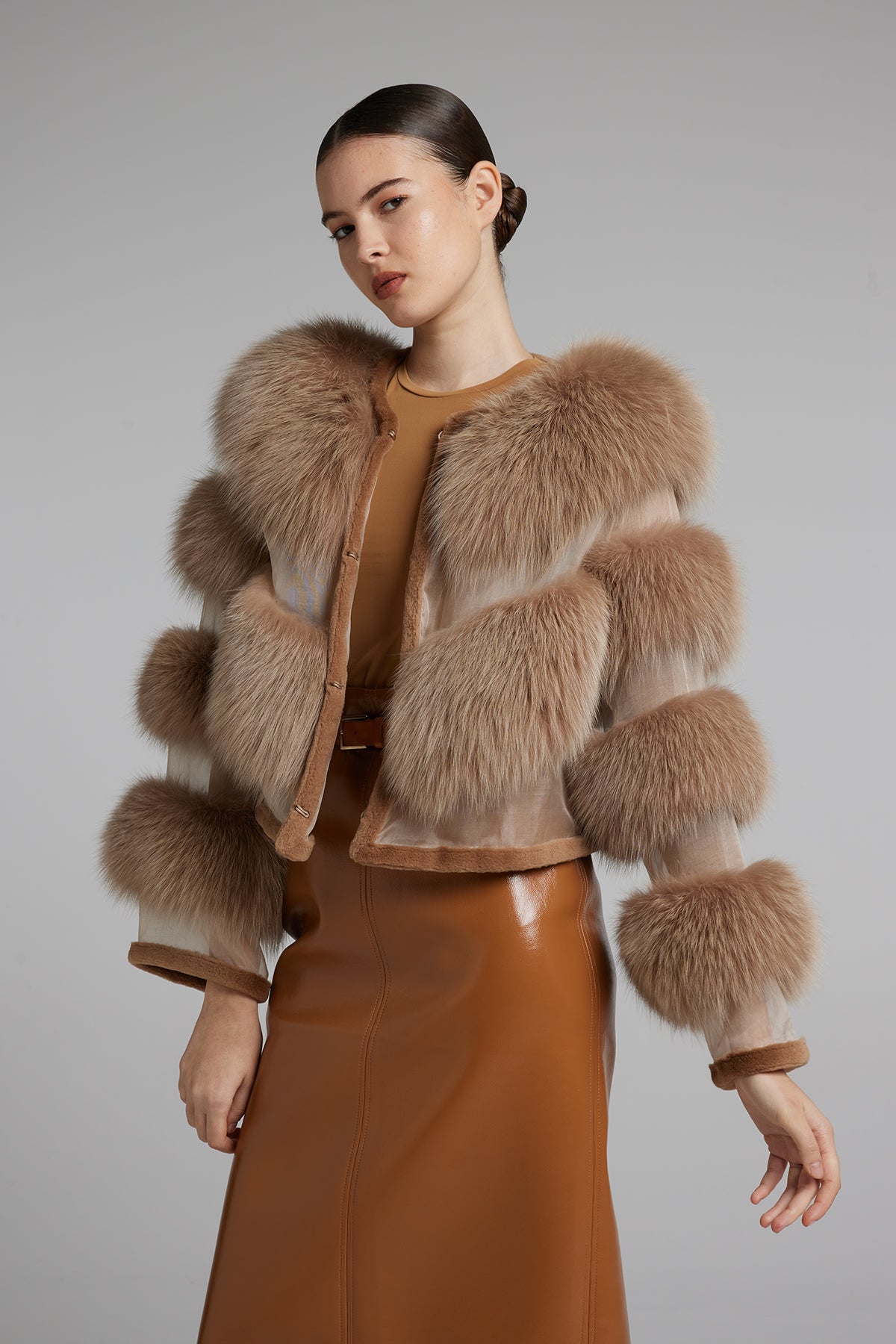 Giacca in volpe con organza, regular fit.