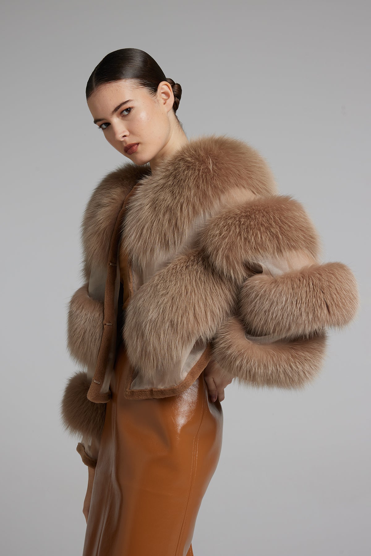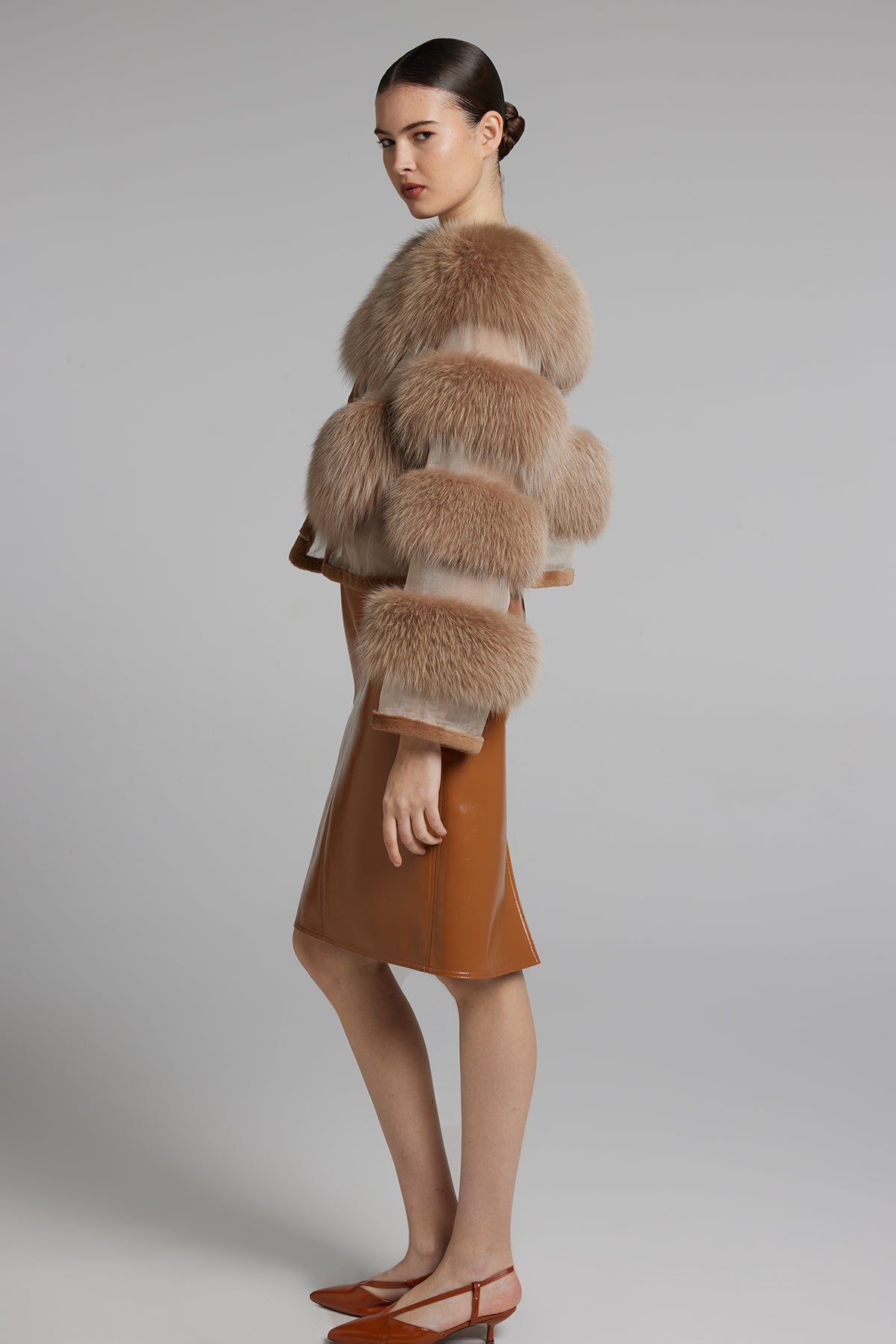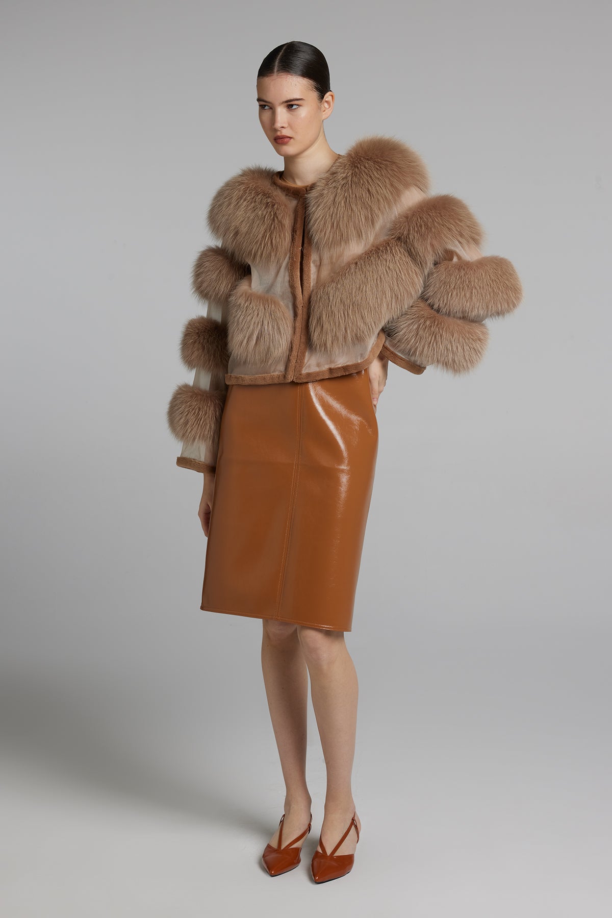 Giacca in volpe con organza, regular fit.